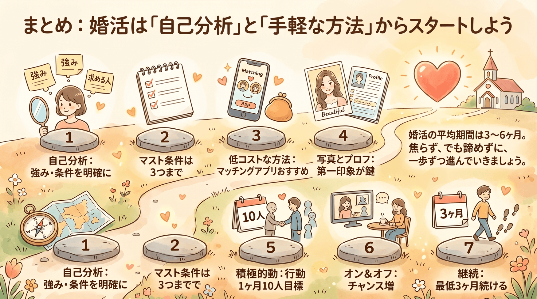 まとめ:婚活は「自己分析」と「手軽な方法」からスタートしよう
