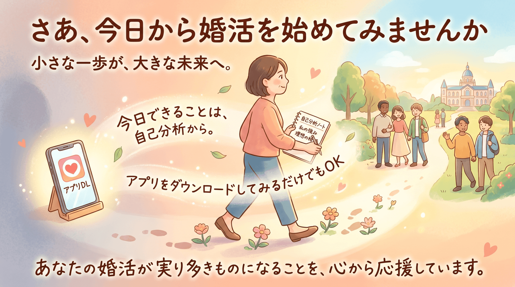「婚活、何から始めればいいかわからない」という不安は、少し軽くなりましたでしょうか。